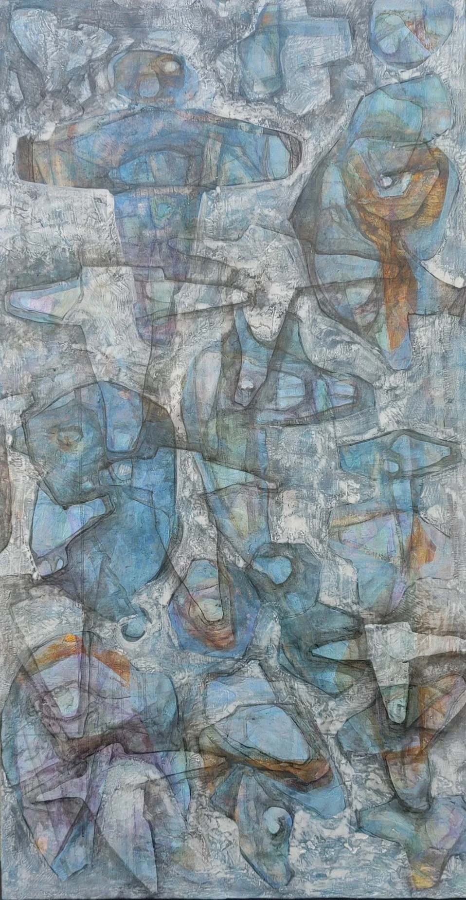 “Friends of Anvil", Gouache + Latex on canvas, 24” x 48”, 2023.