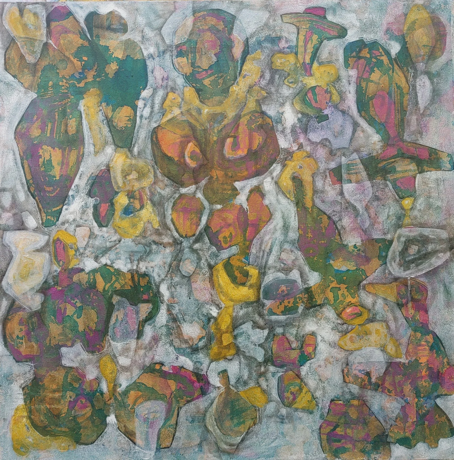 “Shaman”, Gouache on canvas, 36” x 36”, 2023.