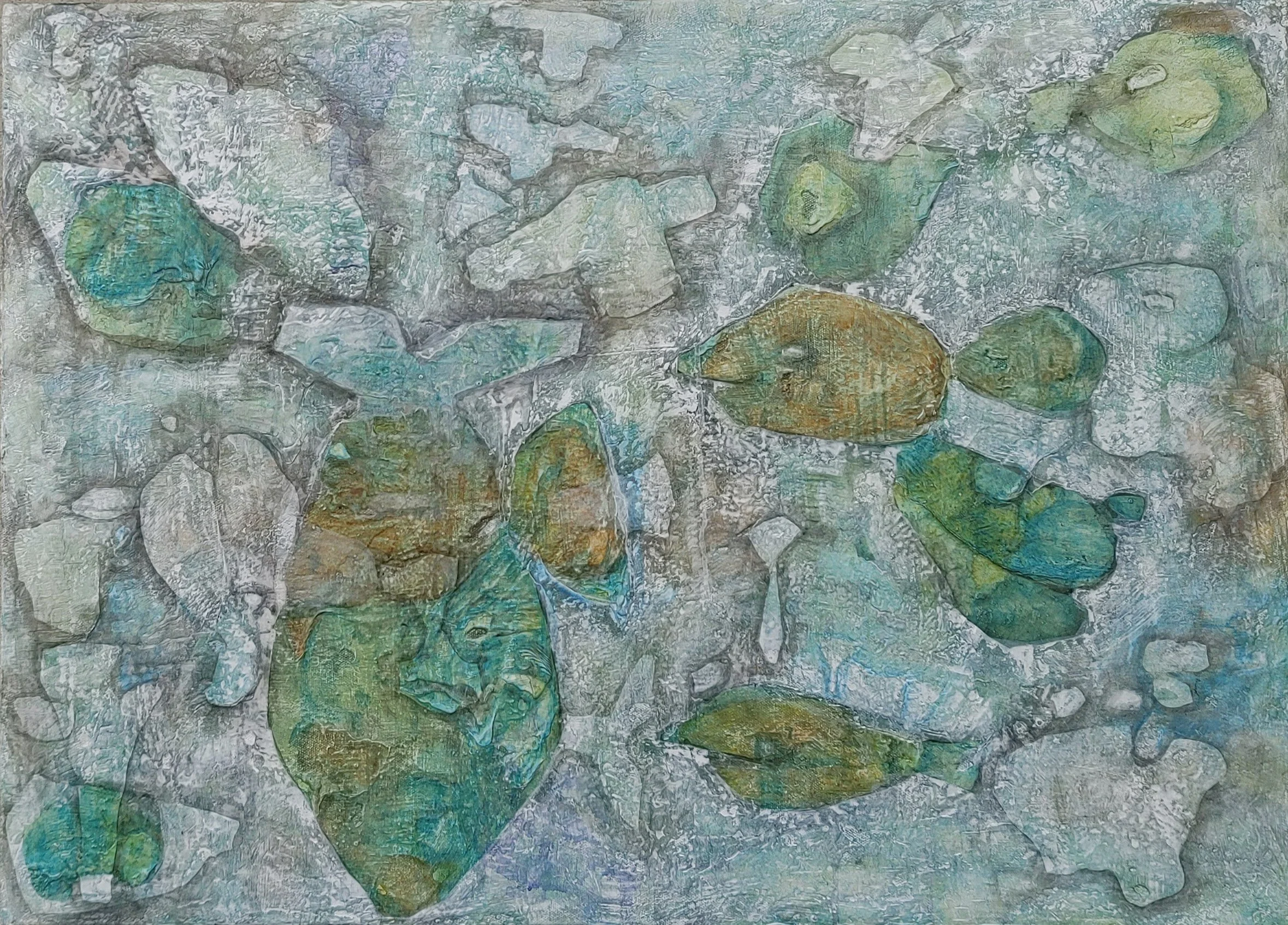 “Triceratops”, Gouache + Latex on canvas, 36” x 24”, 2022.